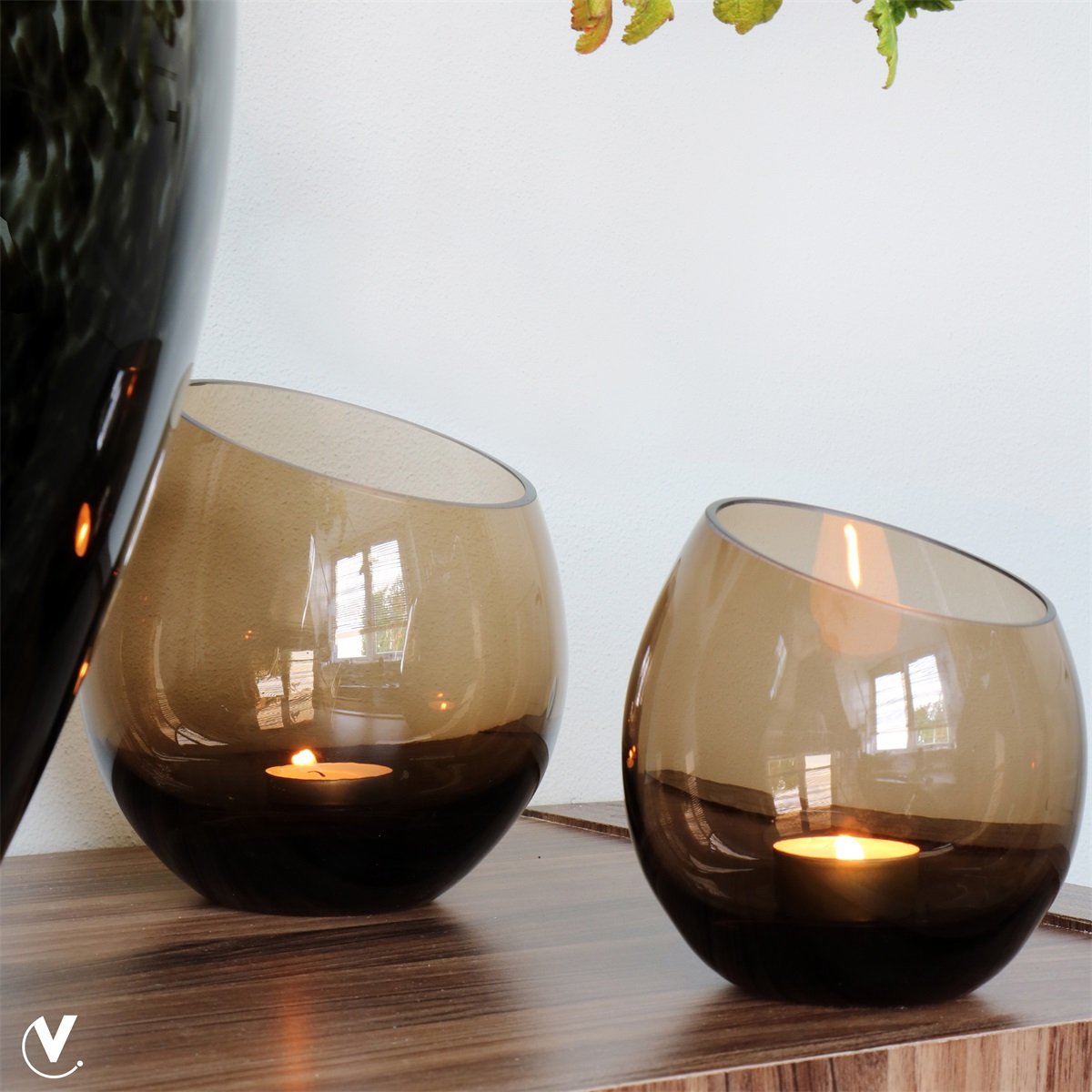 Kaarshouder Moho XS taupe Ø12,5 x H12,5 cm (set van 2 stuks)